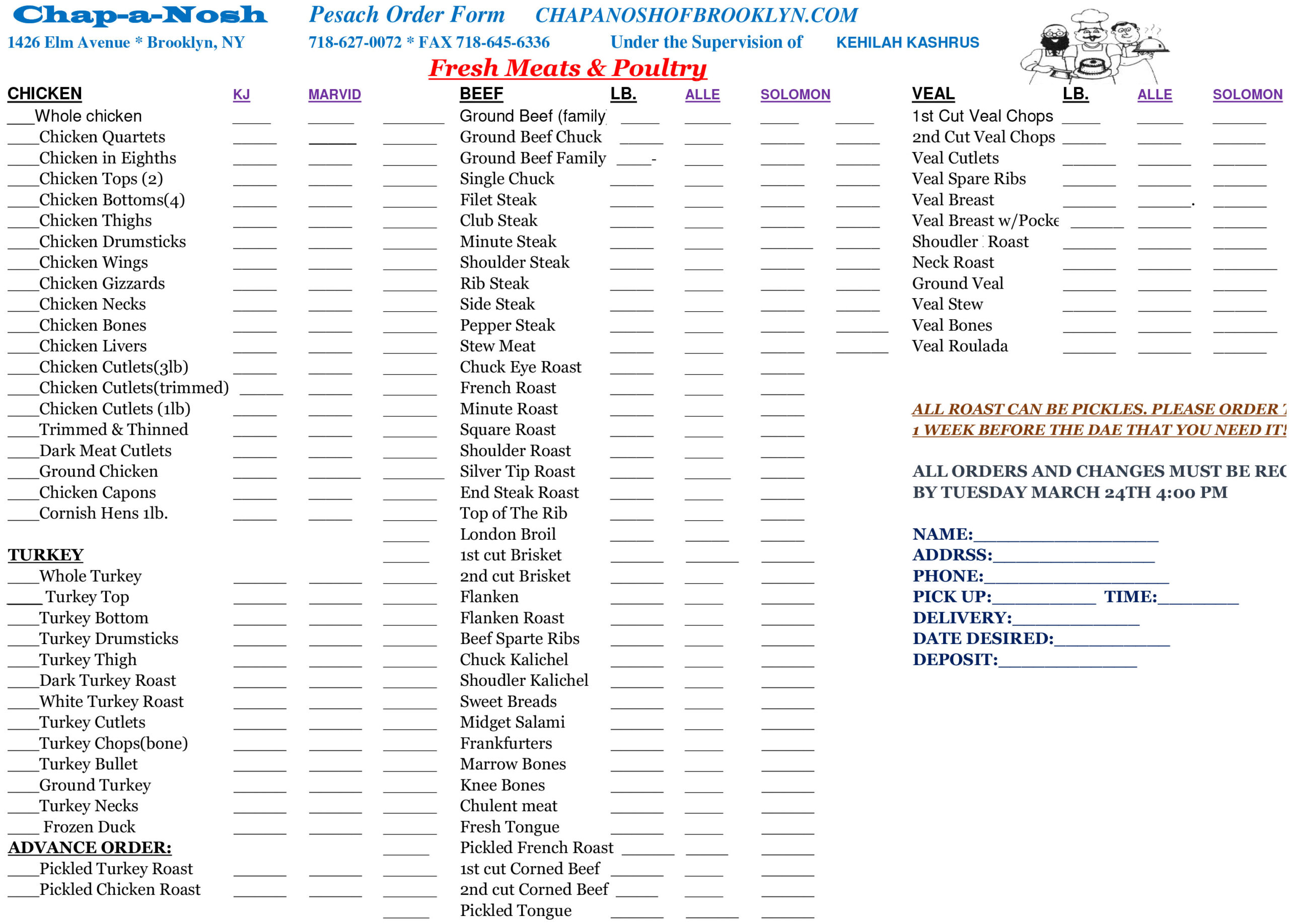 Pesach Order Form Order Online at Chapanoshonline.com |